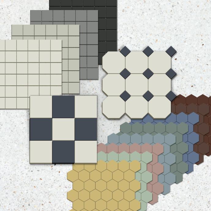 A creative expression in tile can be aesthetic, practical, and functional. Incorporate your brand graphic into a distinctive flooring design; integrate a restaurant theme into a bar backsplash; simulate a classic clementine Mosaico floor pattern without the cost or maintenance concerns of the original.